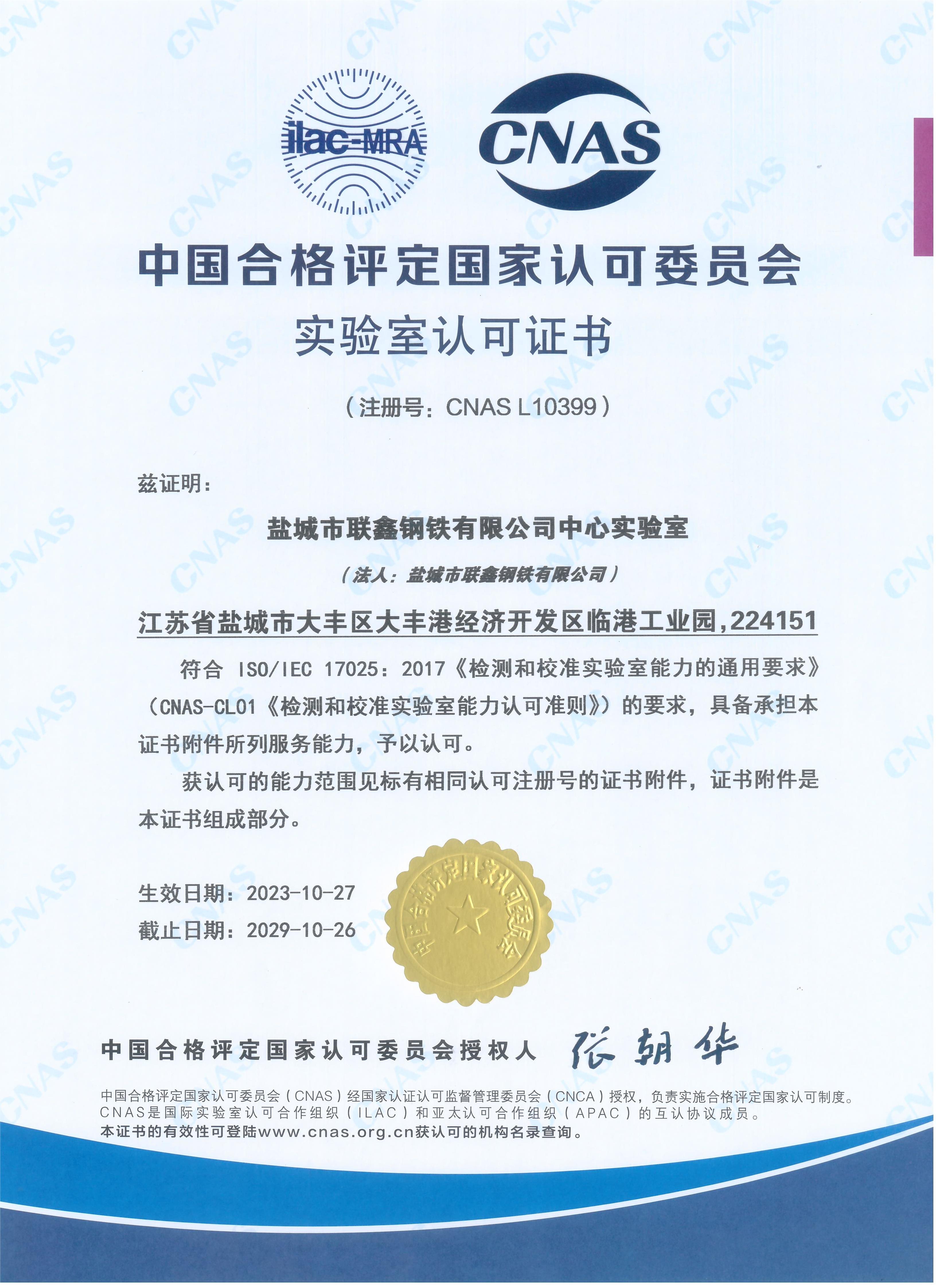 聯鑫鋼鐵具有健全的質量管理體系,2003年順利通過了北京世標認證中心有限公司的現場審核,并取得了ISO9001:2000質量管理體系認證證書。2016年公司進行新版標準換版,并通過了現場審核,取得了ISO9001:2015質量管理體系認證證書,產品質量符合國家和行業標準。產品質量始終保持良好的信用記錄,產品自2002年以來國家、省、市質監抽查合格率均為100%。